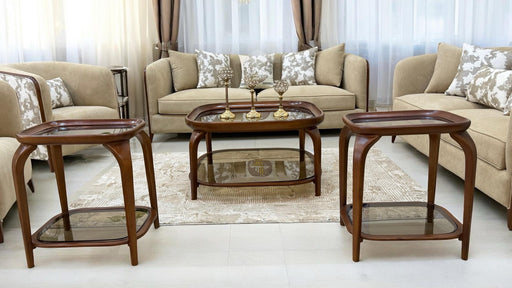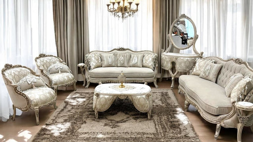 View full detailsTAKSIM Living Room Set New ARRIVALS – FREE Delivery 🚚 Handcrafted from solid wood in Egypt 🇪🇬 Set includes: 2 Sofas • 2 arm Chairs, Center Table w...